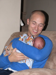 Lucas went to his first doctor's appointment. He is definitely growing. He weighed in at 6 lbs 7 oz....a big jump from leaving the hospital at 5 lbs 11 oz. He did pee on the table immediately after weighing in, Ryan thinks he was throwing the weigh in. Either way we know he is eating well. He measured 19 3/4", so either he is shrinking or the hospital stretched him out a little more. He is a great little baby and doing so well. We are all so happy to be home!